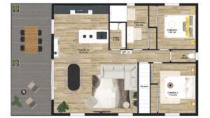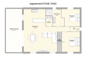 Situé au 1er et dernier étage, sans ascenseur, il est composé de: Une pièce à vivre de 44 m2, 2 chambres, une salle d'eau, un WC indépendant, un cellier, une grande terrasse de 24 m2 avec VUE MER, 2 places de stationnements privatives et sécurisées.