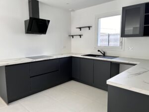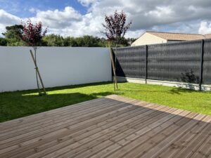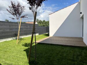 Chose rare, la maison est vendue entièrement terminée, à l'intérieur comme à l'extérieur! Clôture, portillon, gazon, terrasse bois, arbres plantés, éclairages extérieurs, cuisine équipée, peintures, revêtement de sol…