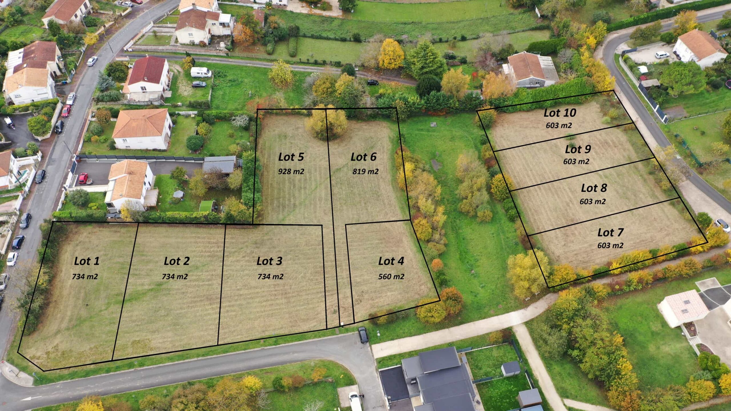 bâtir viabilisés, libres de constructeur, de 560 à 928 m².